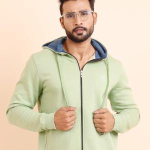 BERRYBLUES Premium Men's Fleece Full Sleeve Hoody Sweat Shirt - Pista