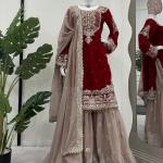 Maroon Georgette Salwar Suit With Dupatta